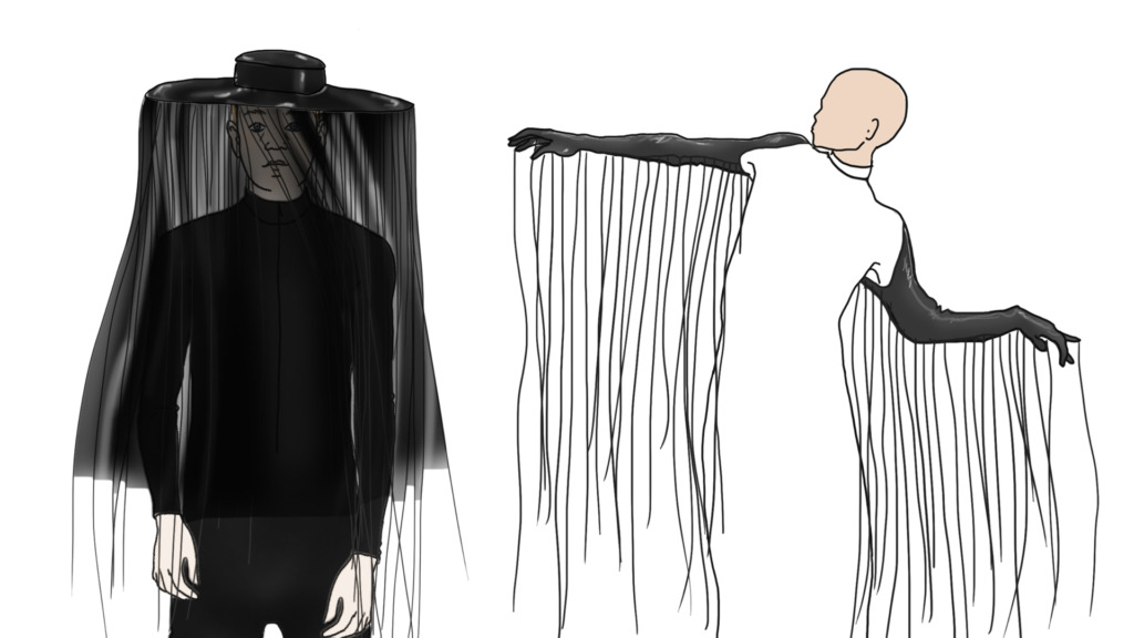 Kostymeskisser til forestillingen laget av scenograf Thale Kvam Olsen